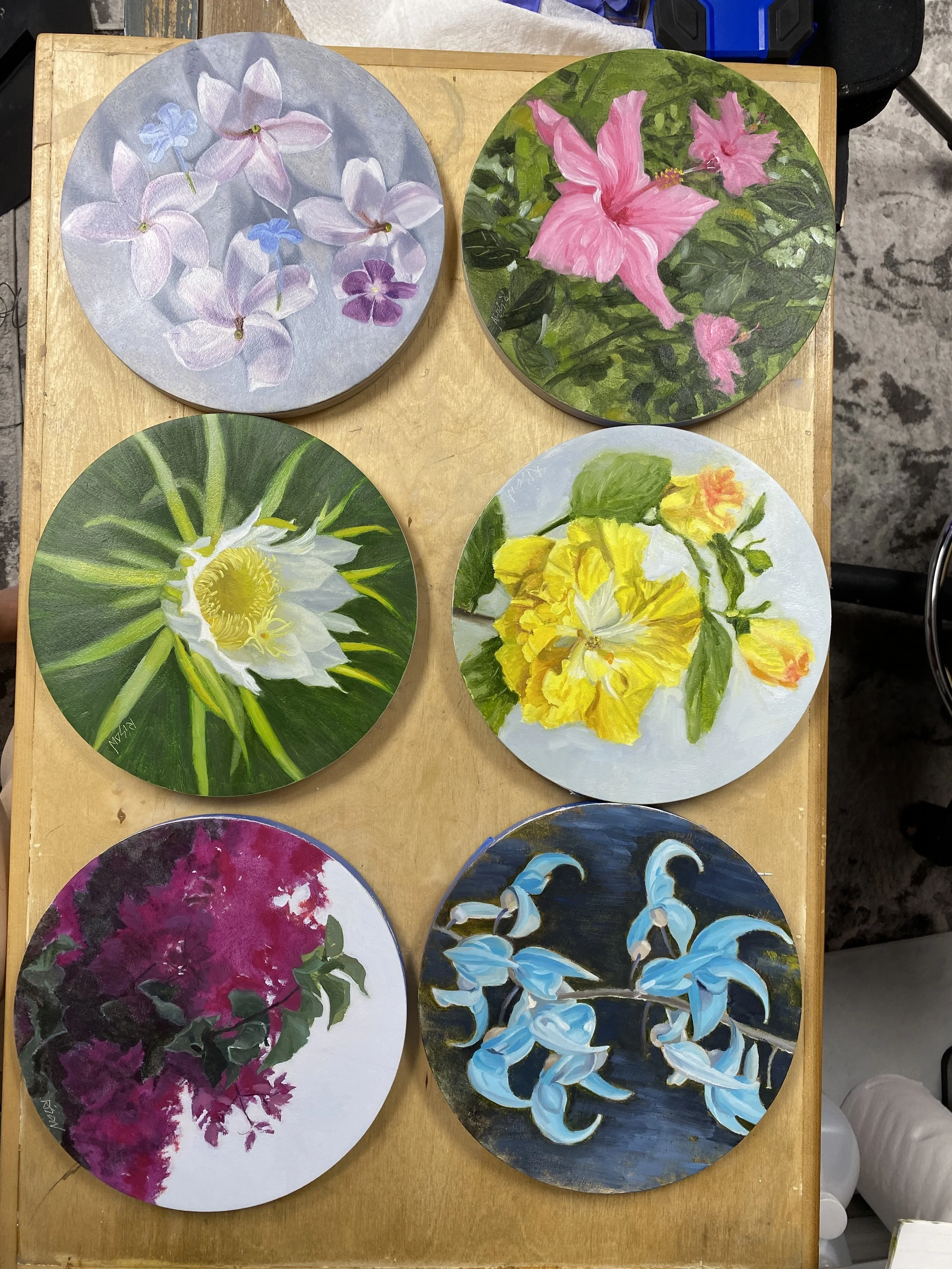I returned from Maui just before the devastating fires that would forever change the island. Moved by the destruction and the loss experienced by so many, I painted this series of six works, donating all proceeds to a dear artist friend whose life and livelihood were upended by the disaster.